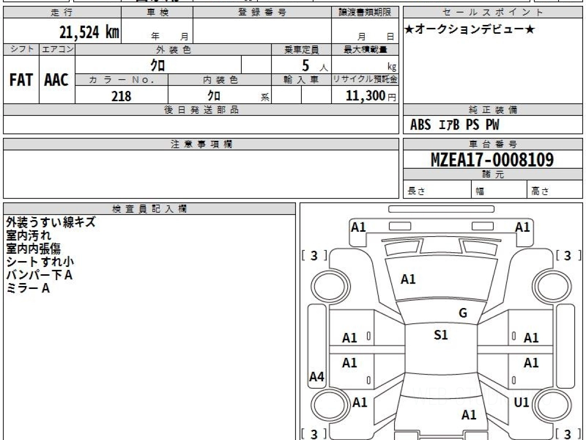 Оценка аукциона: 4, что гарантирует хорошее техническое и косметическое состояние кузова и салона.