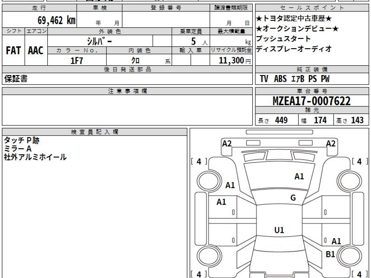 Оценка аукциона: 4, что гарантирует хорошее техническое и косметическое состояние кузова и салона.