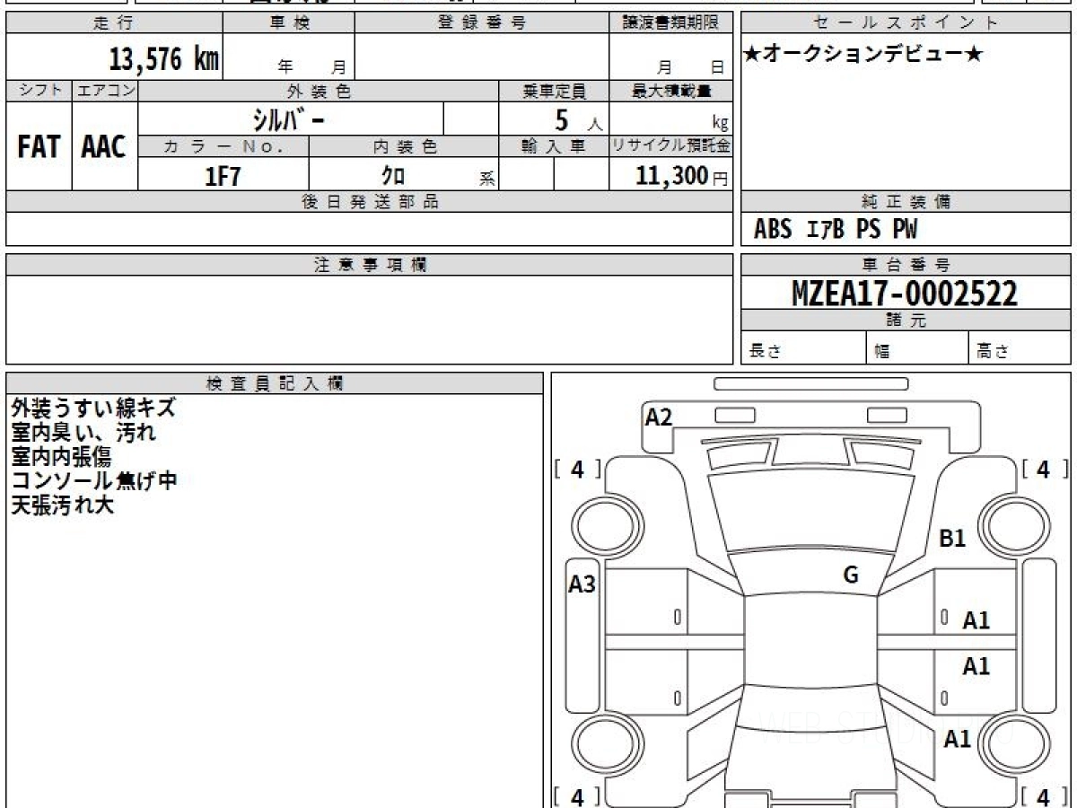 Оценка аукциона: 4, что гарантирует хорошее техническое и косметическое состояние кузова и салона.