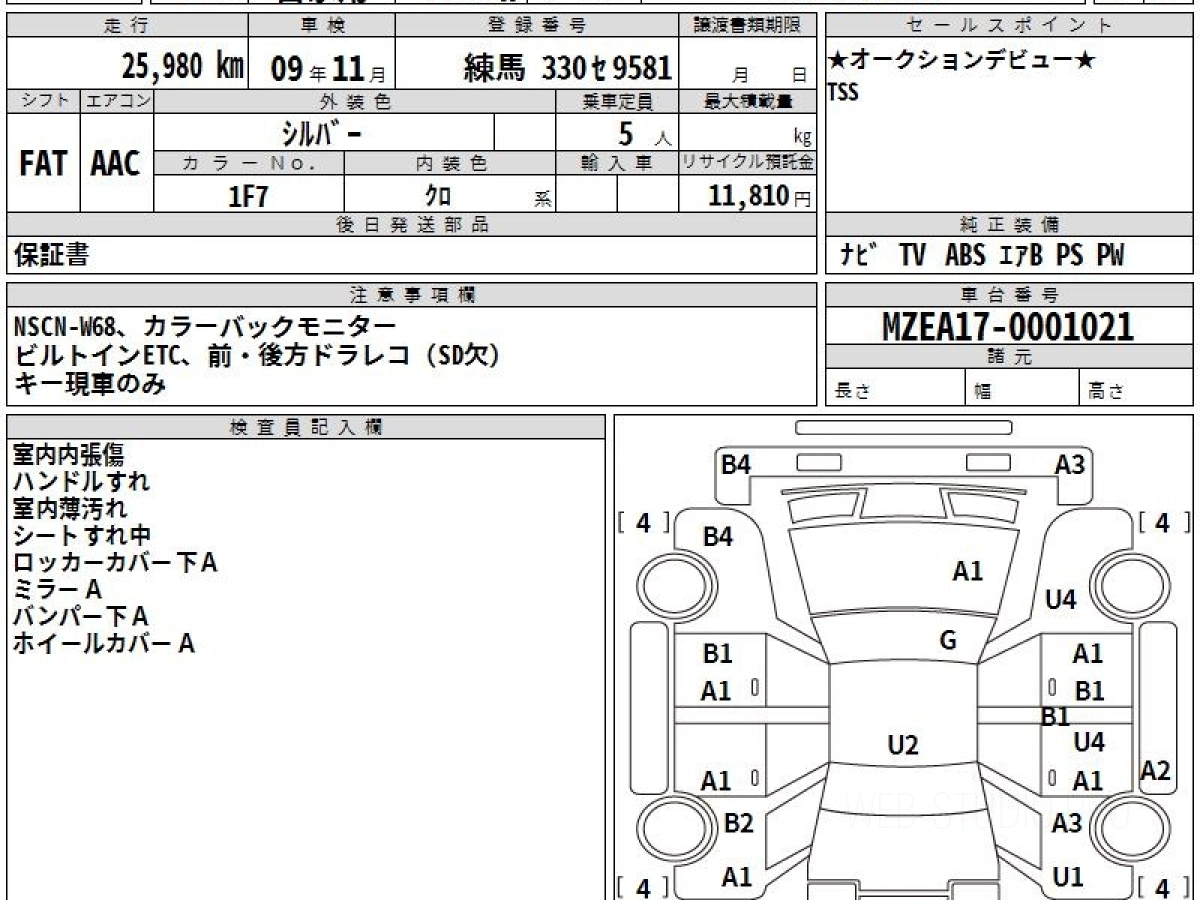Оценка аукциона: 3, что гарантирует хорошее техническое и косметическое состояние кузова и салона.