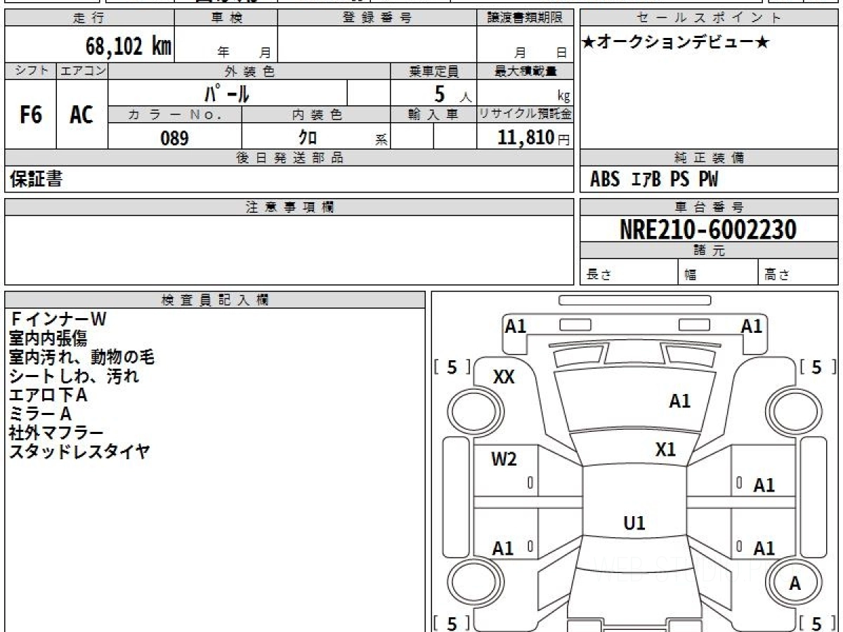 Оценка аукциона: RA, что гарантирует хорошее техническое и косметическое состояние кузова и салона.