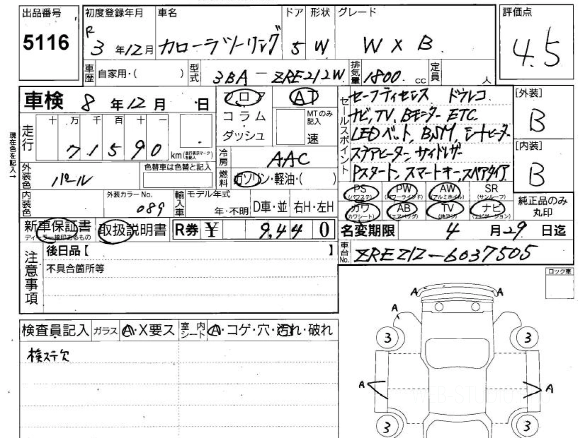 Оценка аукциона: 4.5, что гарантирует хорошее техническое и косметическое состояние кузова и салона.
