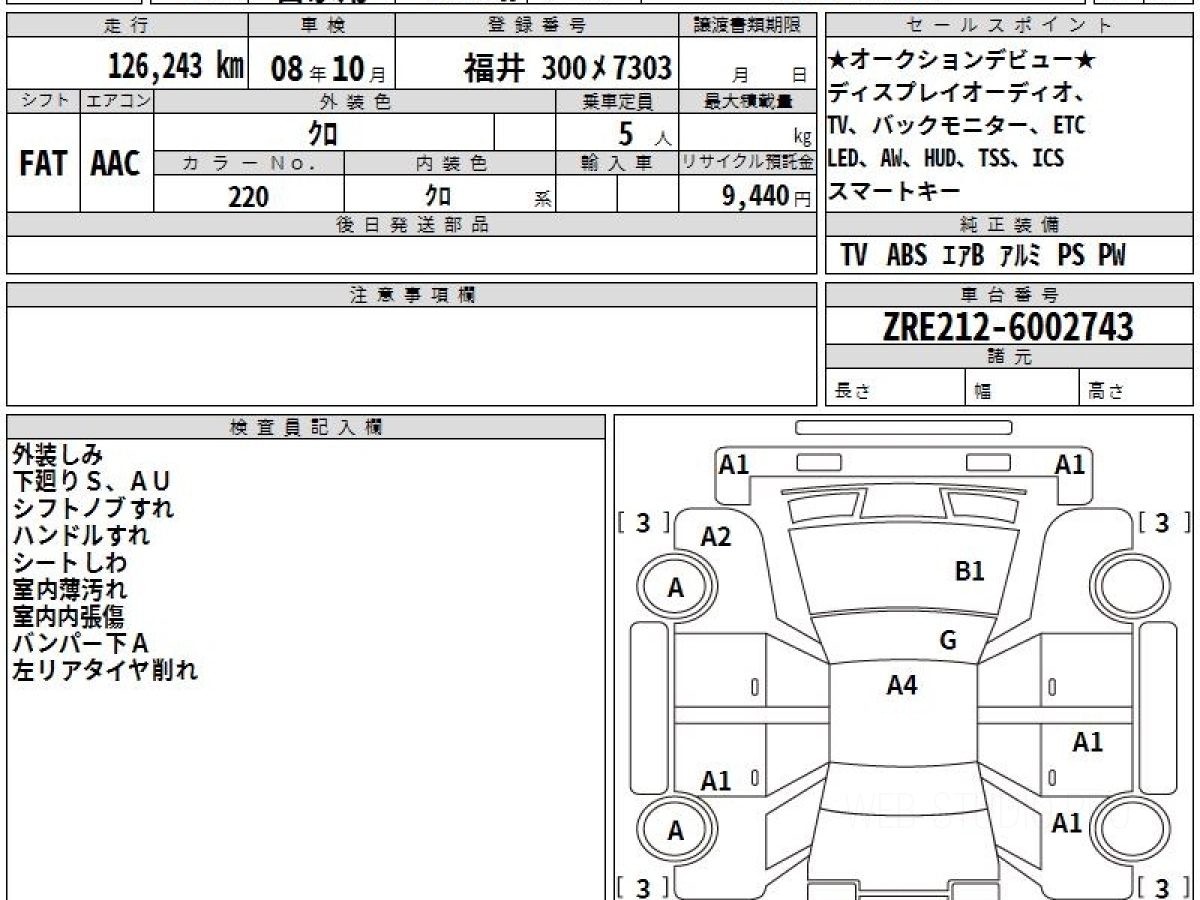 Оценка аукциона: 4, что гарантирует хорошее техническое и косметическое состояние кузова и салона.
