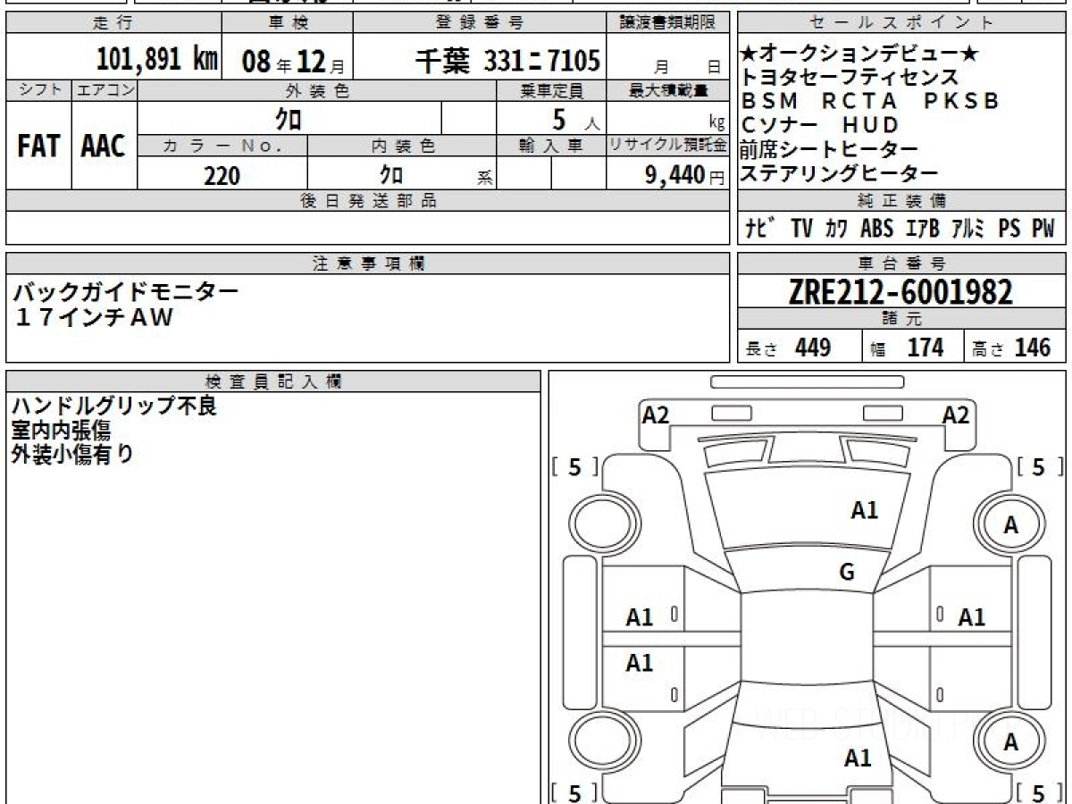 Оценка аукциона: 4, что гарантирует хорошее техническое и косметическое состояние кузова и салона.