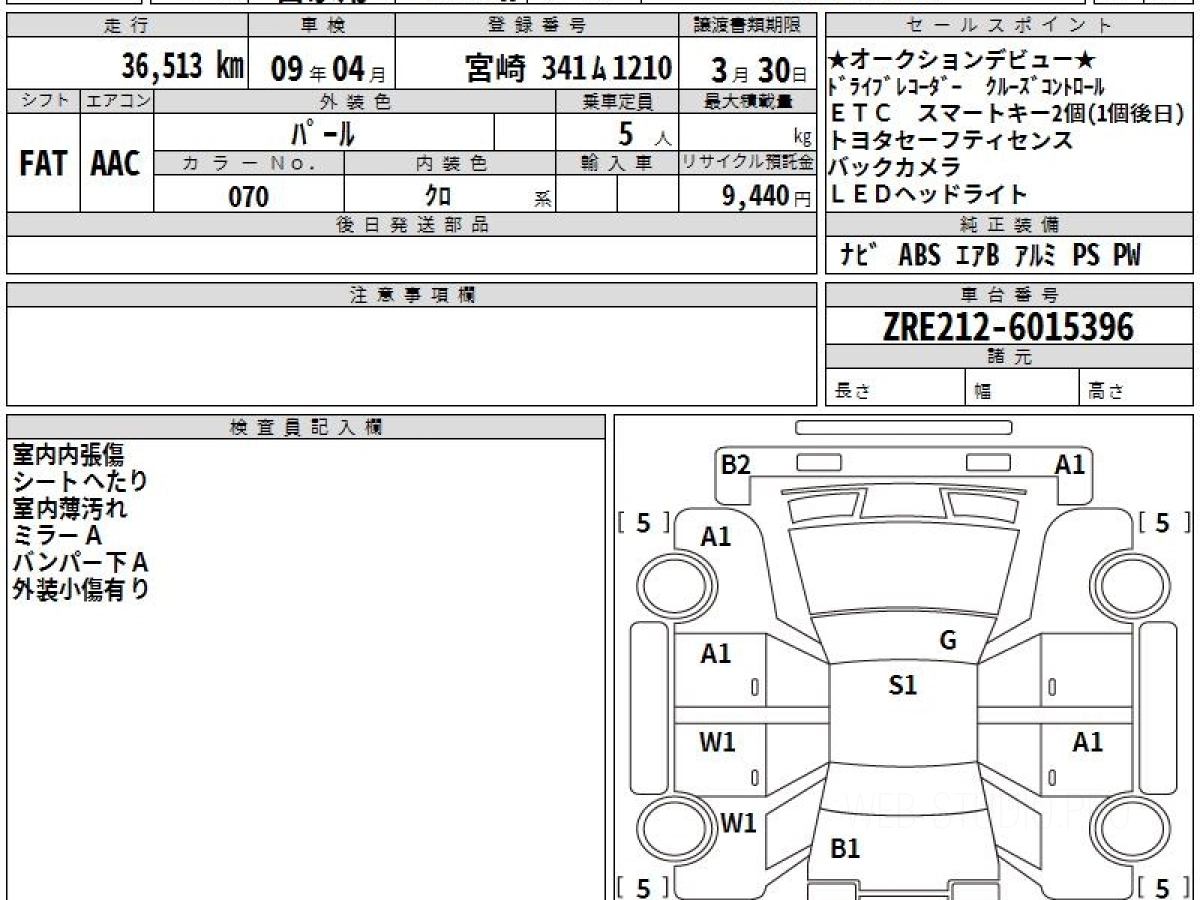 Оценка аукциона: 4, что гарантирует хорошее техническое и косметическое состояние кузова и салона.