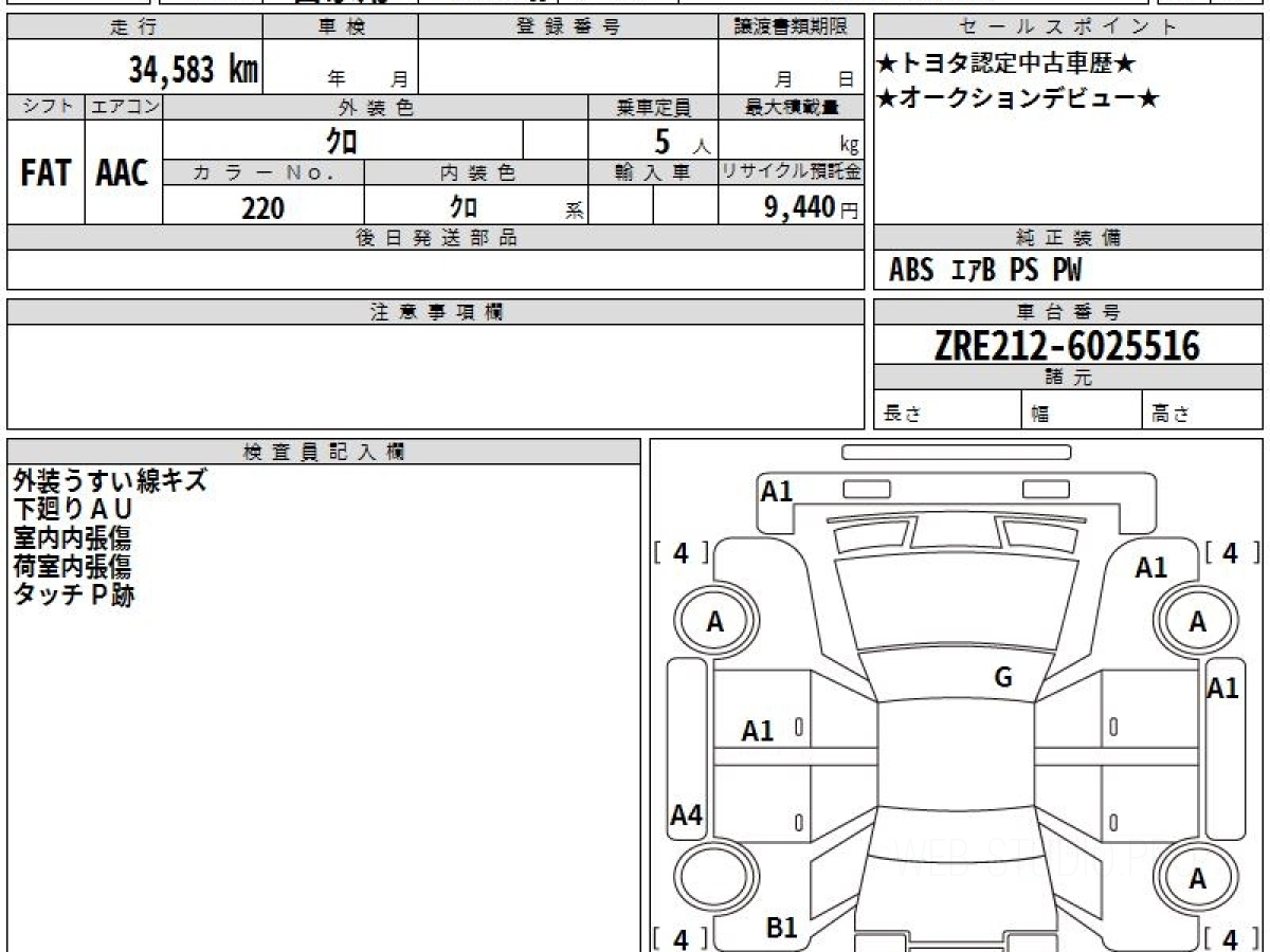 Оценка аукциона: 4, что гарантирует хорошее техническое и косметическое состояние кузова и салона.