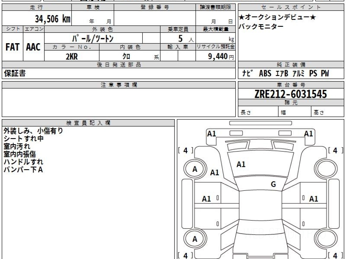 Оценка аукциона: 4, что гарантирует хорошее техническое и косметическое состояние кузова и салона.