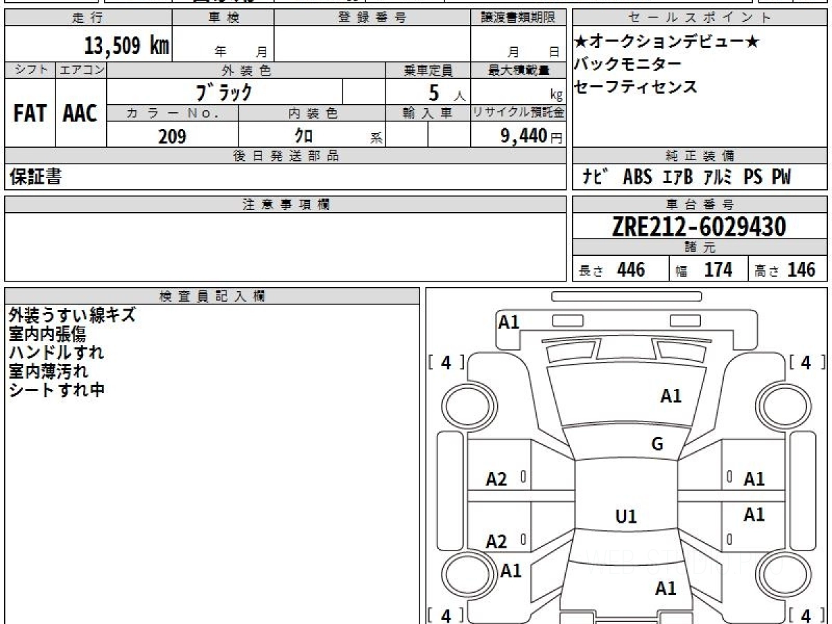Оценка аукциона: 4, что гарантирует хорошее техническое и косметическое состояние кузова и салона.