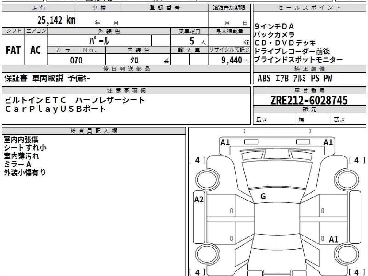 Номер кузова: ZRE212W.