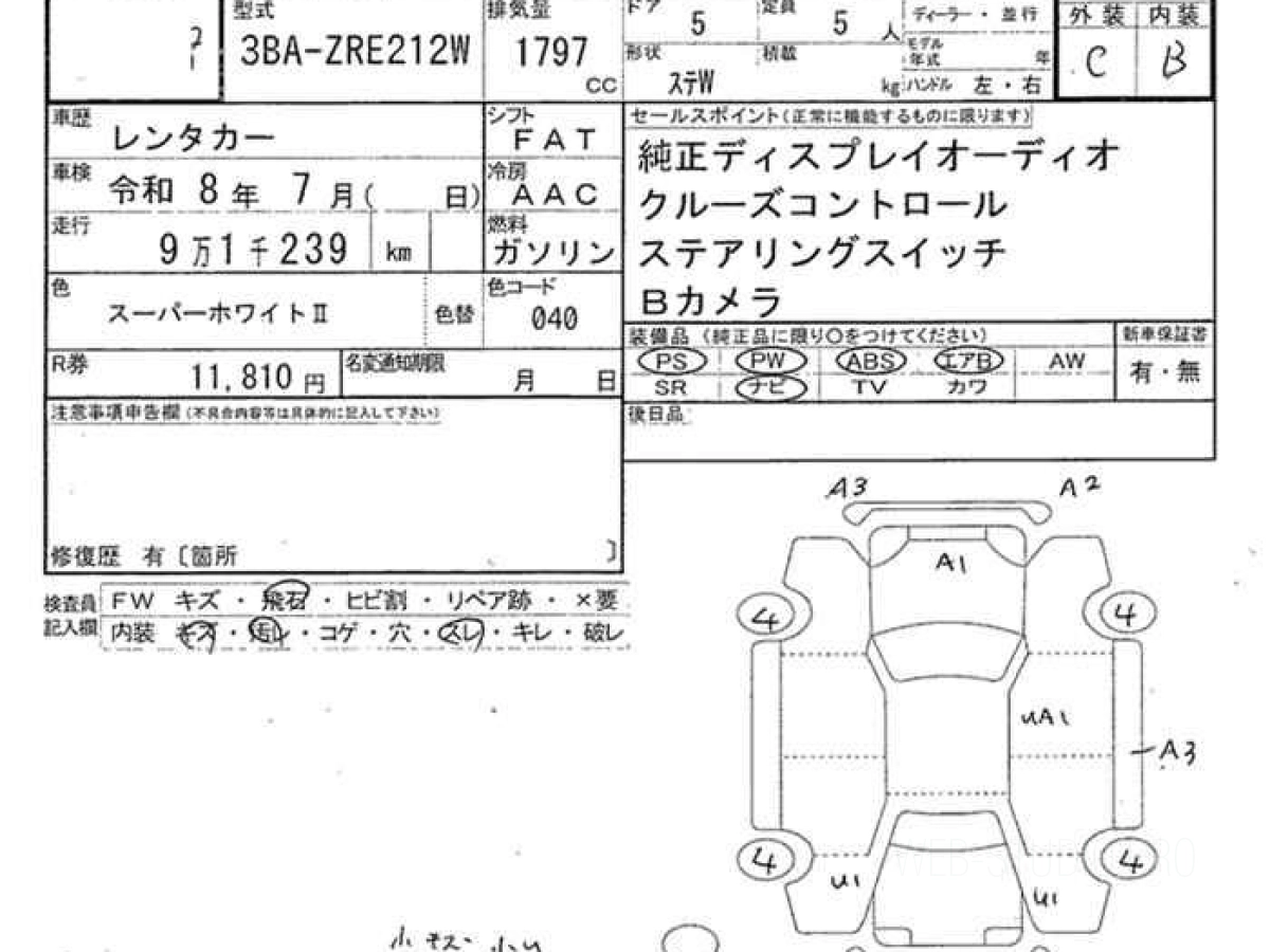 Оценка аукциона: 4, что гарантирует хорошее техническое и косметическое состояние кузова и салона.