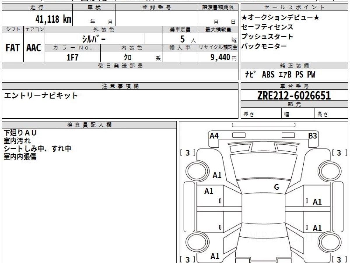 Оценка аукциона: 4, что гарантирует хорошее техническое и косметическое состояние кузова и салона.