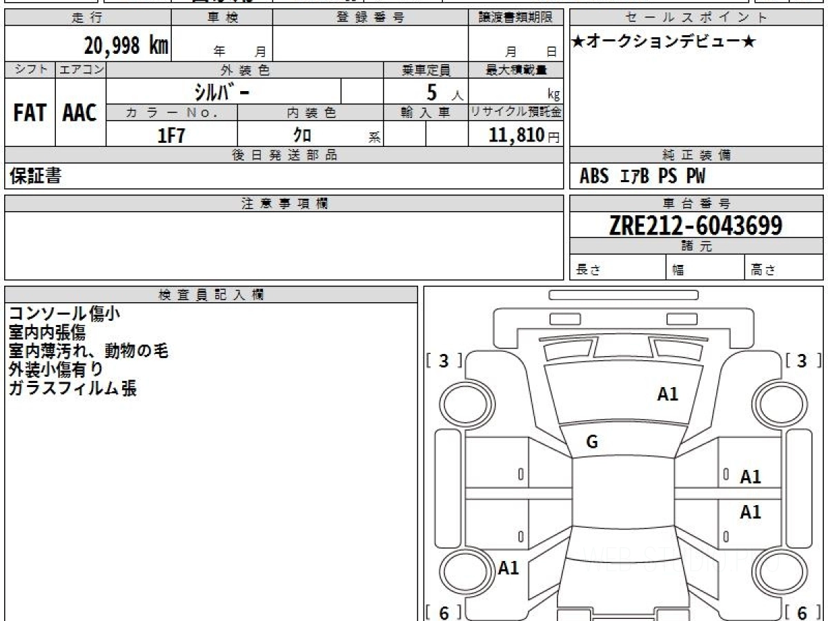 Номер кузова: ZRE212W.
