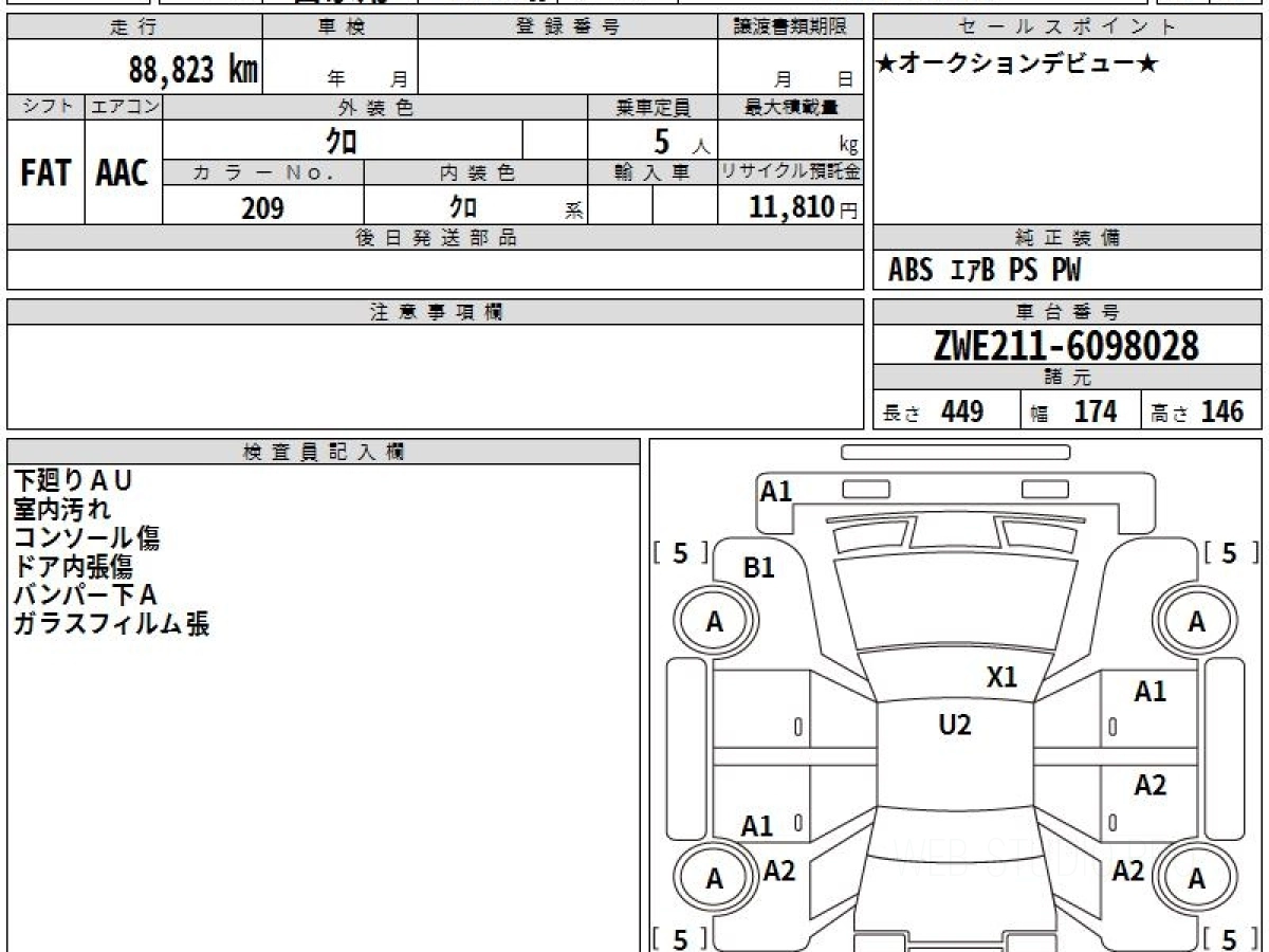 Оценка аукциона: 4, что гарантирует хорошее техническое и косметическое состояние кузова и салона.