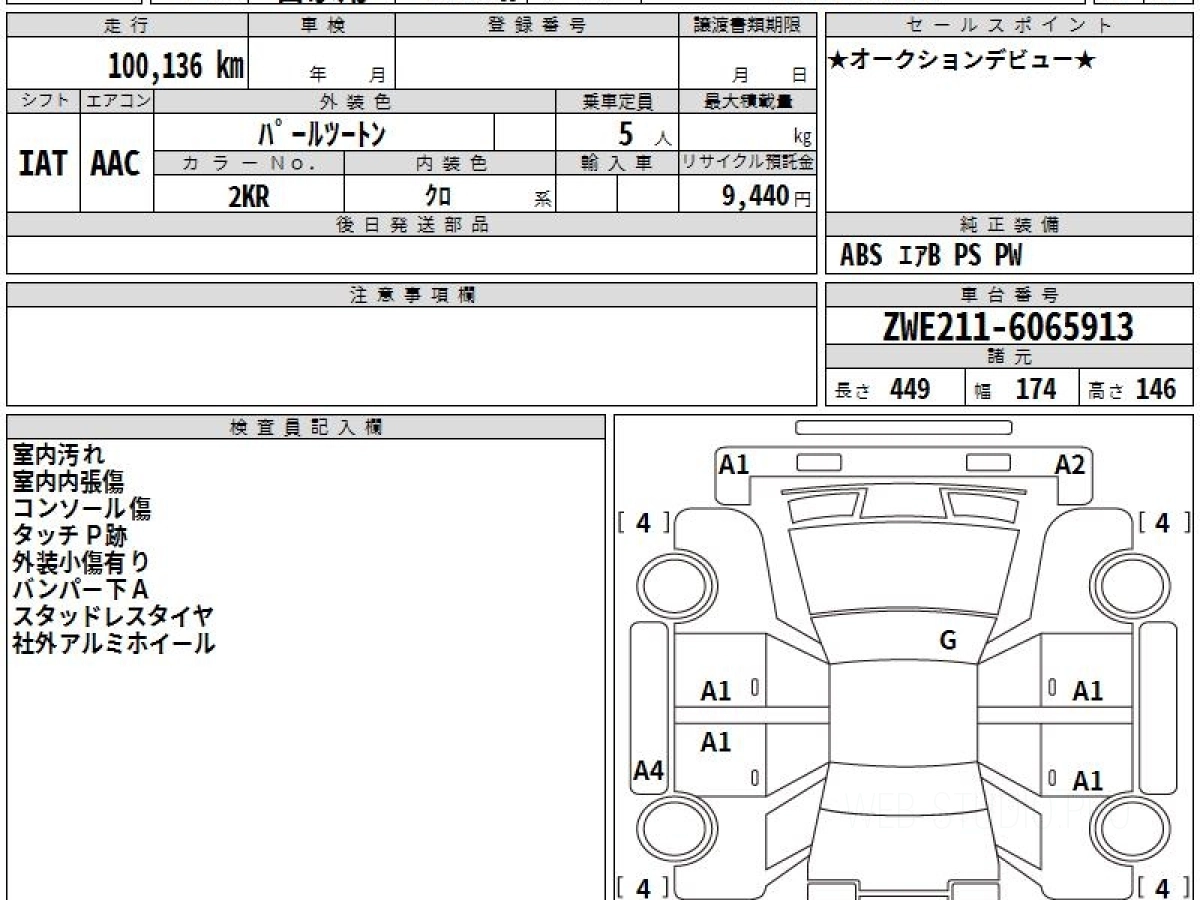Оценка аукциона: 4, что гарантирует хорошее техническое и косметическое состояние кузова и салона.