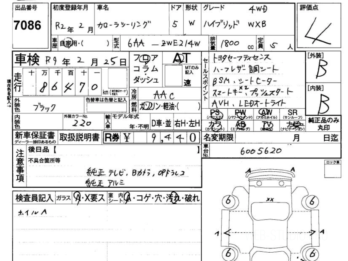 Оценка аукциона: 4, что гарантирует хорошее техническое и косметическое состояние кузова и салона.