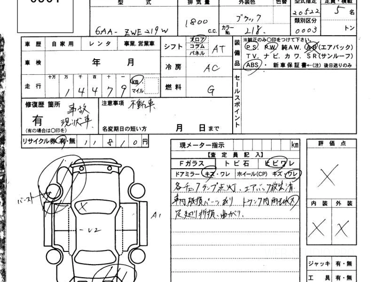 Оценка аукциона: X, что гарантирует хорошее техническое и косметическое состояние кузова и салона.