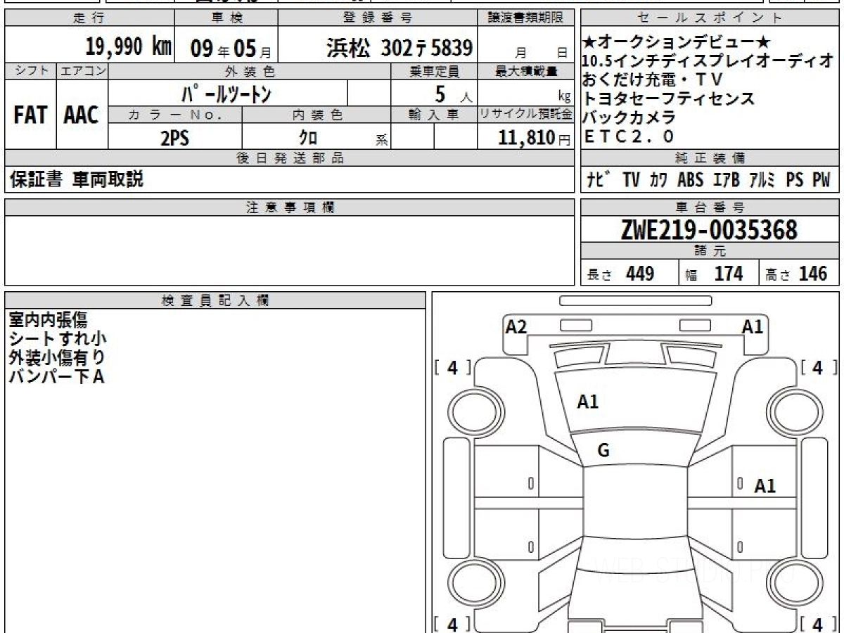 Оценка аукциона: 5, что гарантирует хорошее техническое и косметическое состояние кузова и салона.