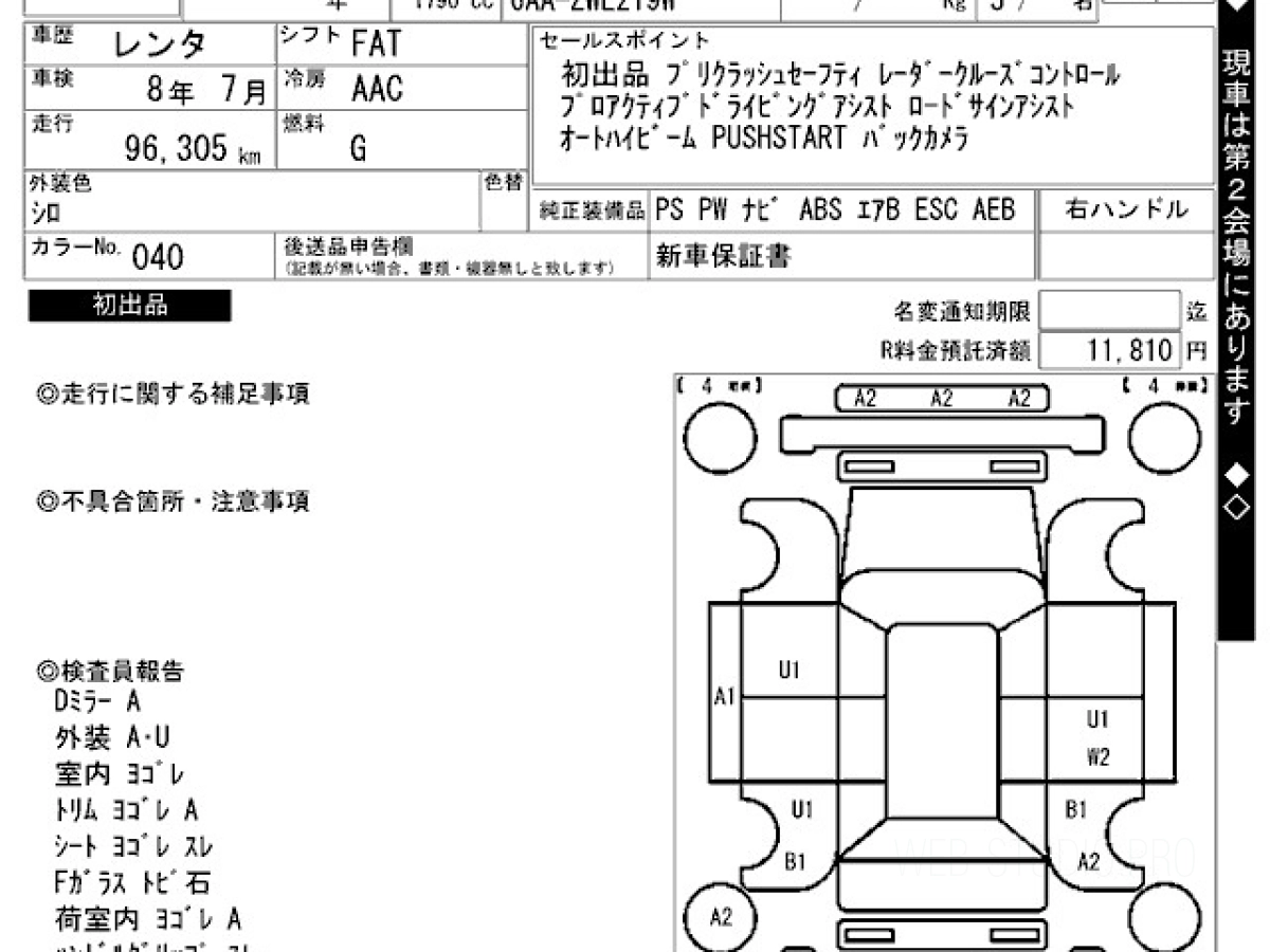 Оценка аукциона: 4, что гарантирует хорошее техническое и косметическое состояние кузова и салона.