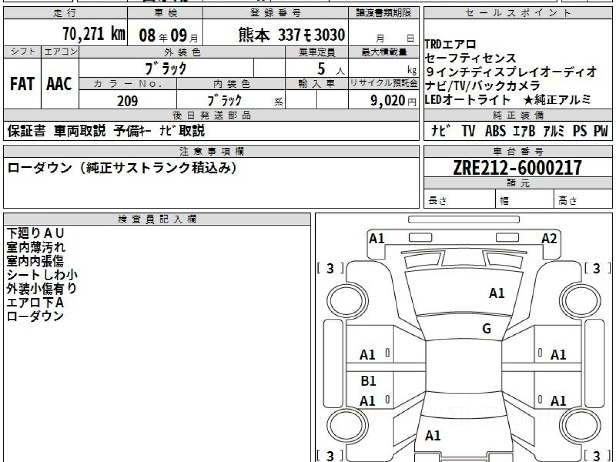 Номер кузова: ZRE212.