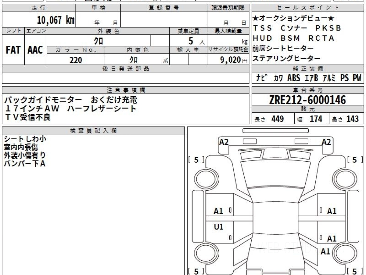Оценка аукциона: 4.5, что гарантирует хорошее техническое и косметическое состояние кузова и салона.