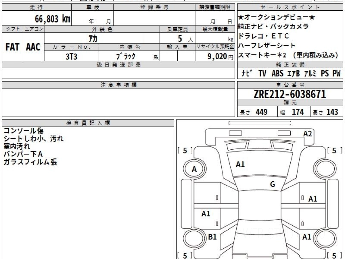 Оценка аукциона: 4.5, что гарантирует хорошее техническое и косметическое состояние кузова и салона.