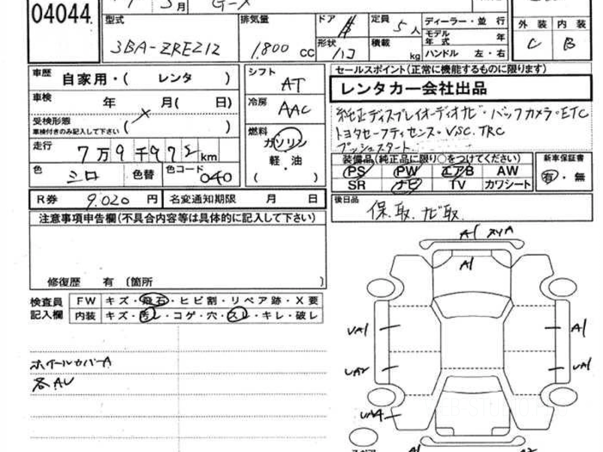 Номер кузова: ZRE212.
