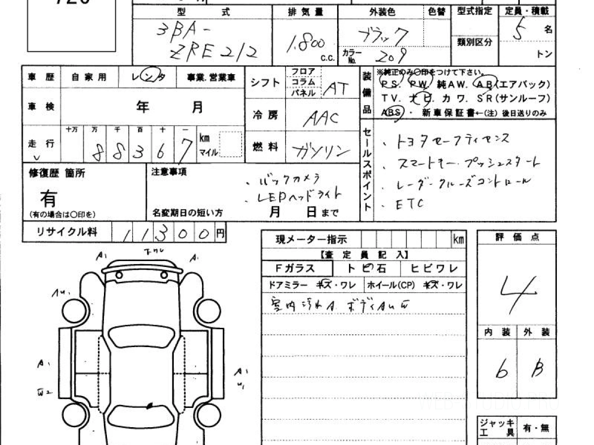 Оценка аукциона: 4, что гарантирует хорошее техническое и косметическое состояние кузова и салона.