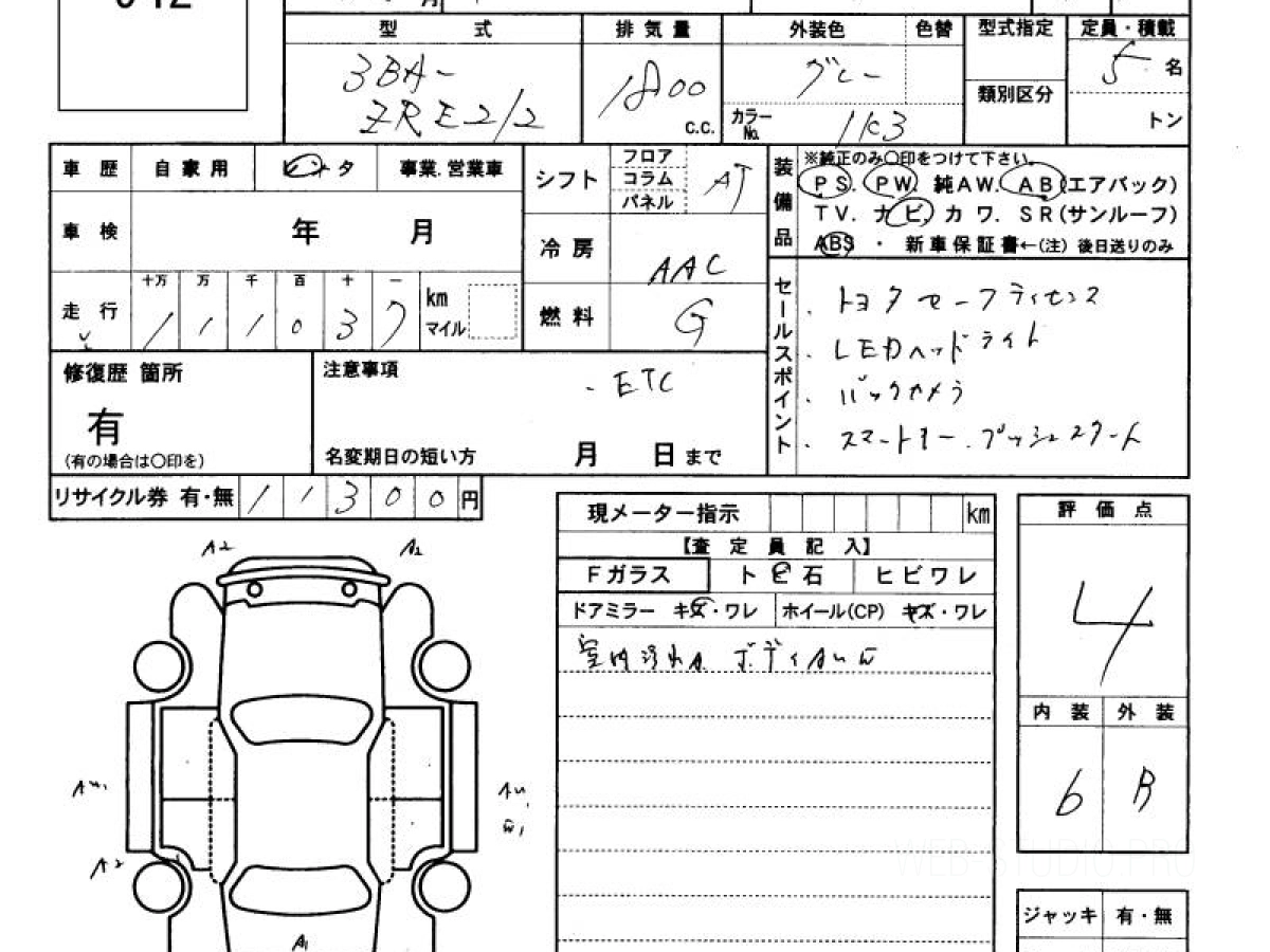 Оценка аукциона: 4, что гарантирует хорошее техническое и косметическое состояние кузова и салона.