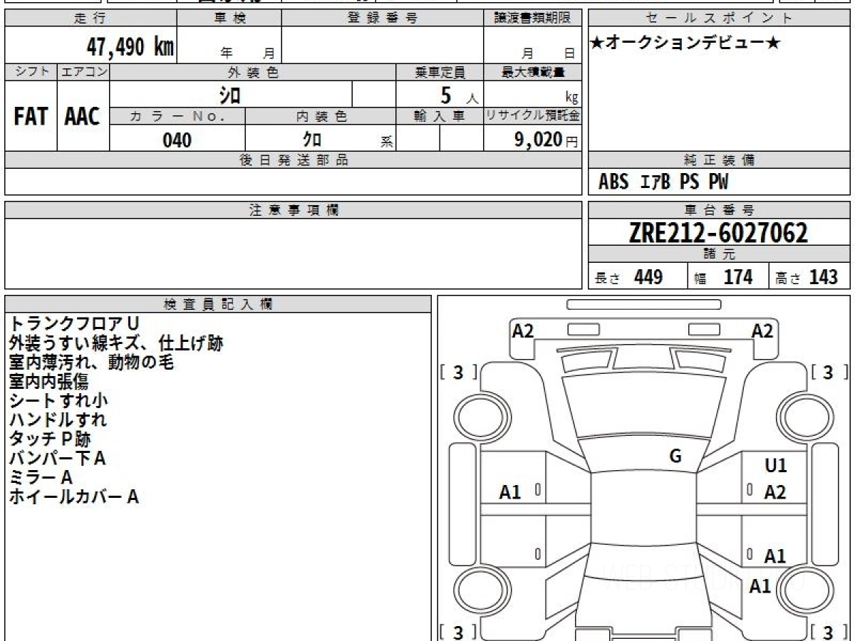 Оценка аукциона: R, что гарантирует хорошее техническое и косметическое состояние кузова и салона.