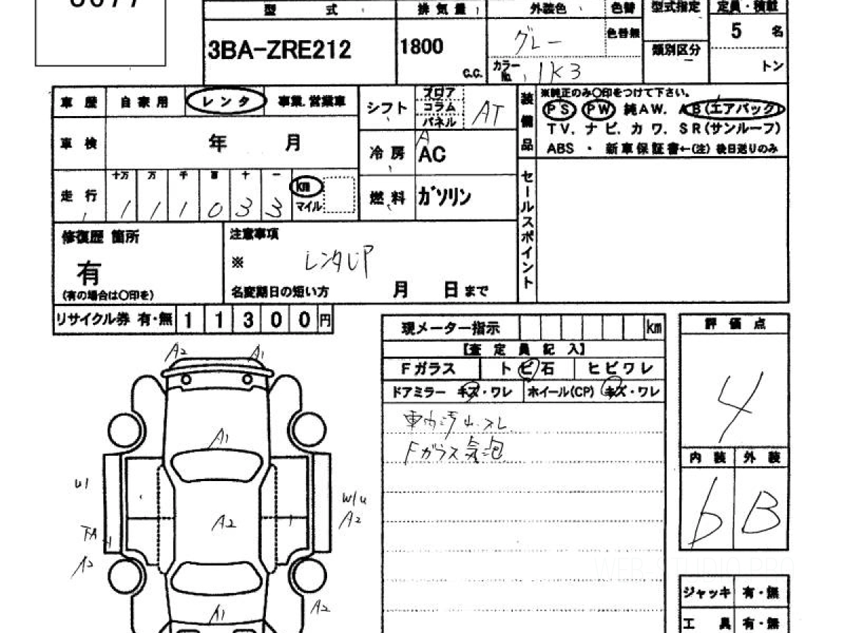 Оценка аукциона: 4, что гарантирует хорошее техническое и косметическое состояние кузова и салона.