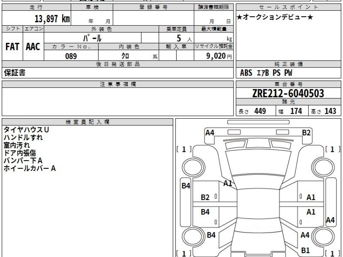 Оценка аукциона: 3, что гарантирует хорошее техническое и косметическое состояние кузова и салона.