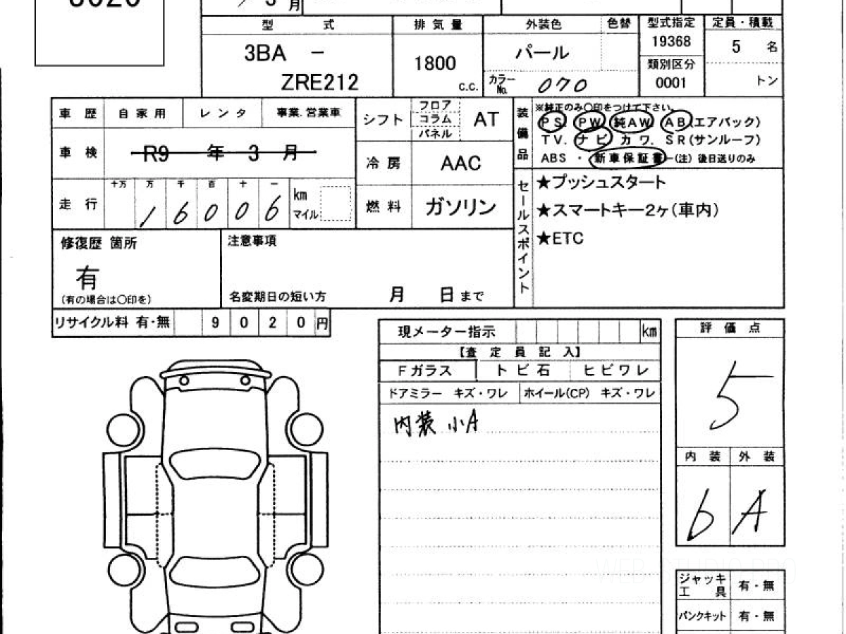 Оценка аукциона: 5, что гарантирует хорошее техническое и косметическое состояние кузова и салона.