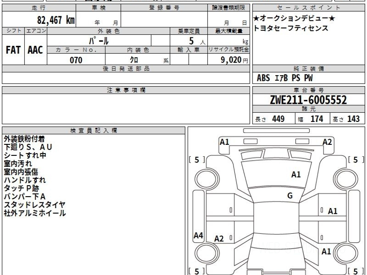 Оценка аукциона: 4, что гарантирует хорошее техническое и косметическое состояние кузова и салона.
