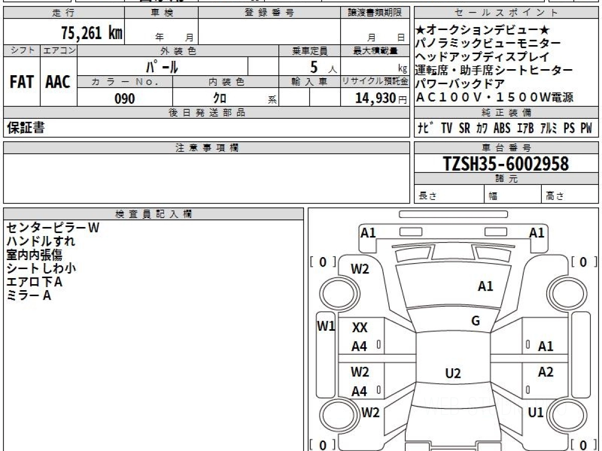 Оценка аукциона: RA, что гарантирует хорошее техническое и косметическое состояние кузова и салона.