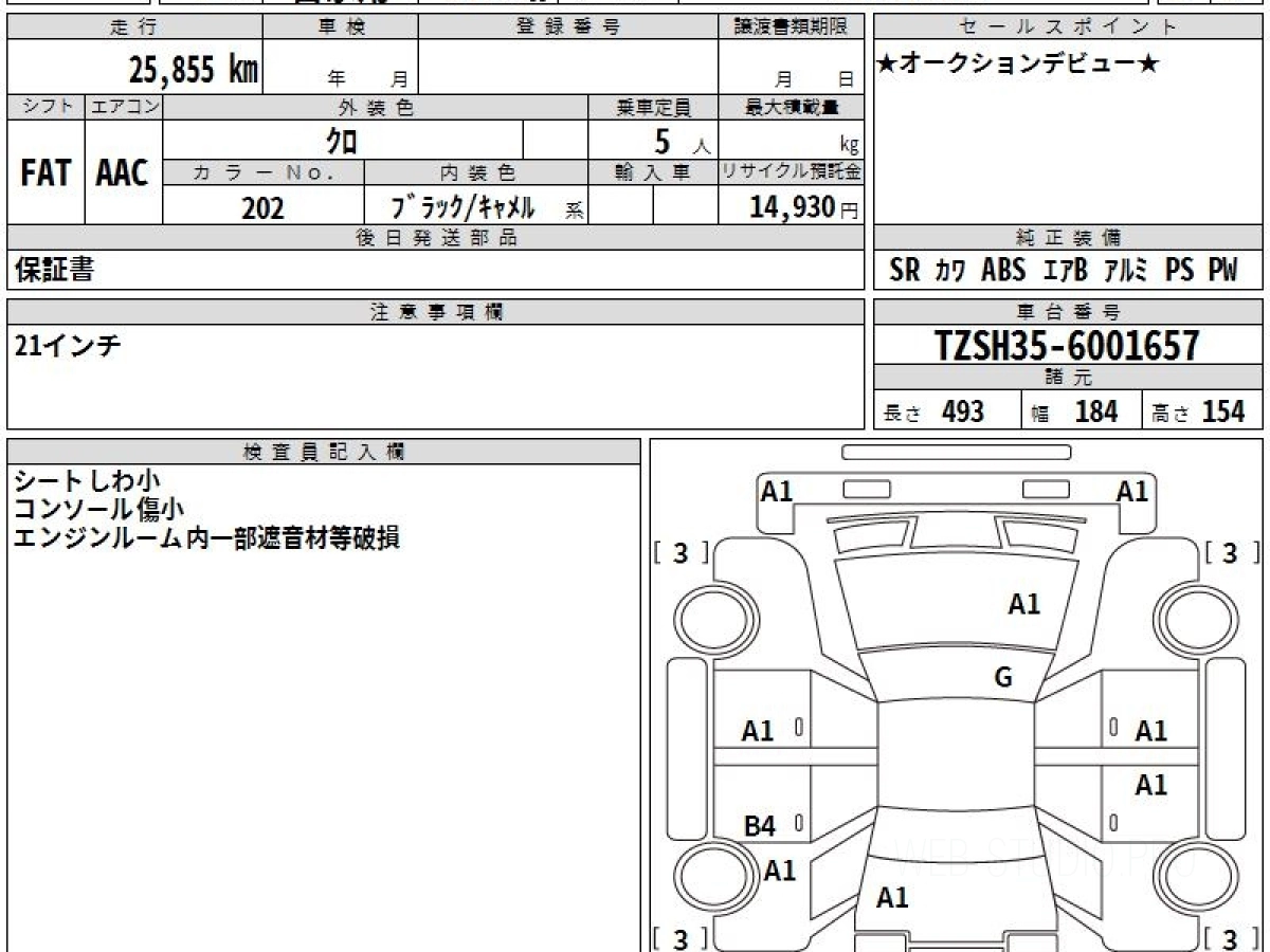 Оценка аукциона: 3.5, что гарантирует хорошее техническое и косметическое состояние кузова и салона.