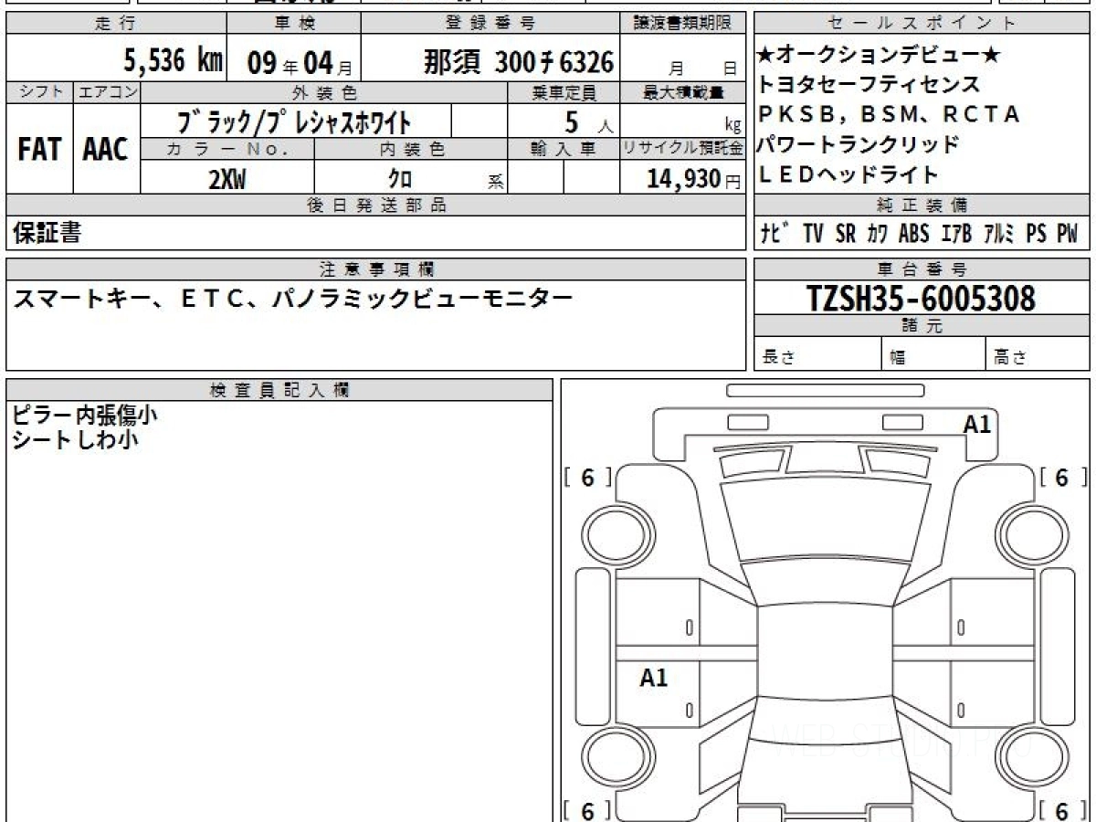 Оценка аукциона: 5, что гарантирует хорошее техническое и косметическое состояние кузова и салона.