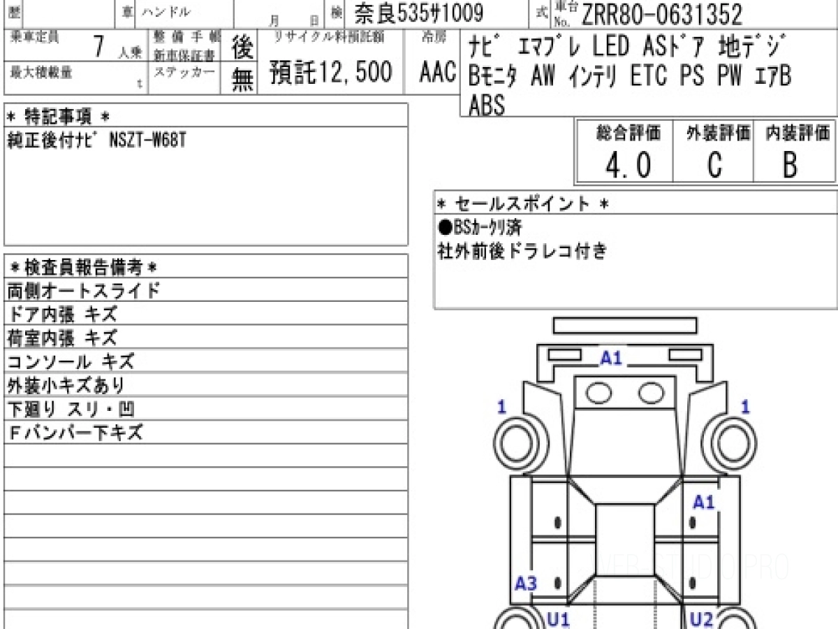 Номер кузова: ZRR80G.