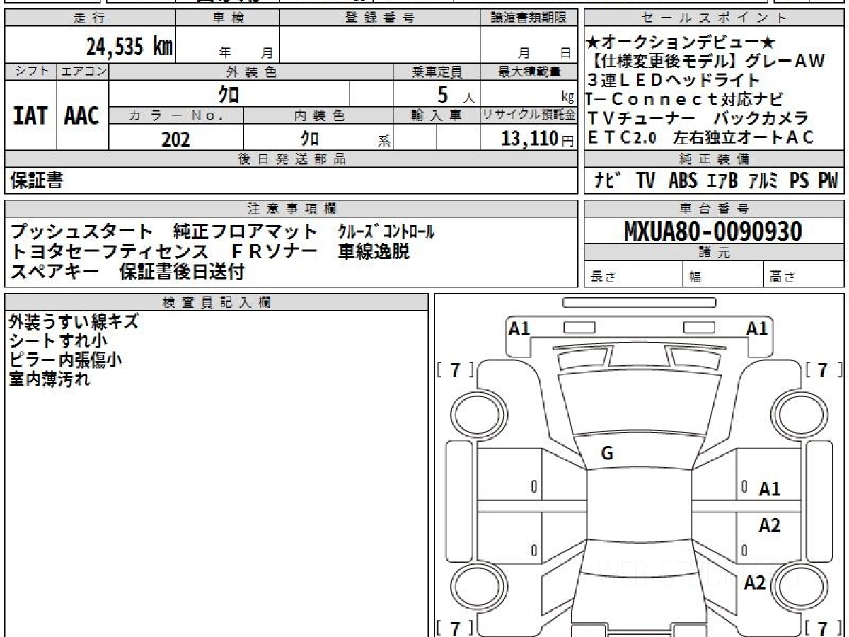 Оценка аукциона: 4.5, что гарантирует хорошее техническое и косметическое состояние кузова и салона.