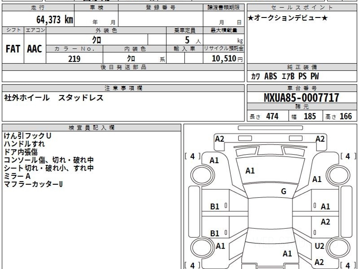 Оценка аукциона: 4, что гарантирует хорошее техническое и косметическое состояние кузова и салона.