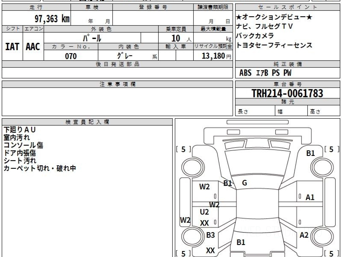 Номер кузова: TRH214W.