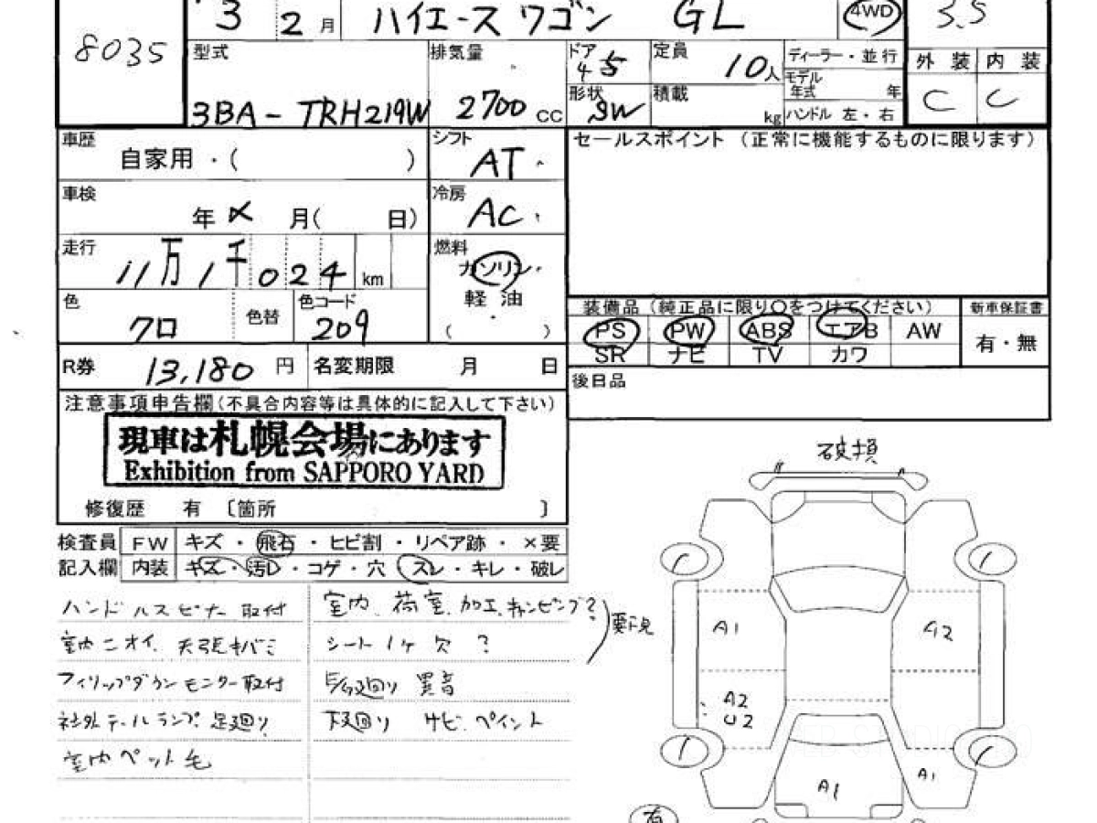 Оценка аукциона: 3.5, что гарантирует хорошее техническое и косметическое состояние кузова и салона.