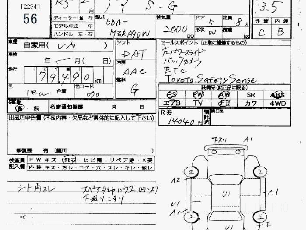 Оценка аукциона: 3.5, что гарантирует хорошее техническое и косметическое состояние кузова и салона.