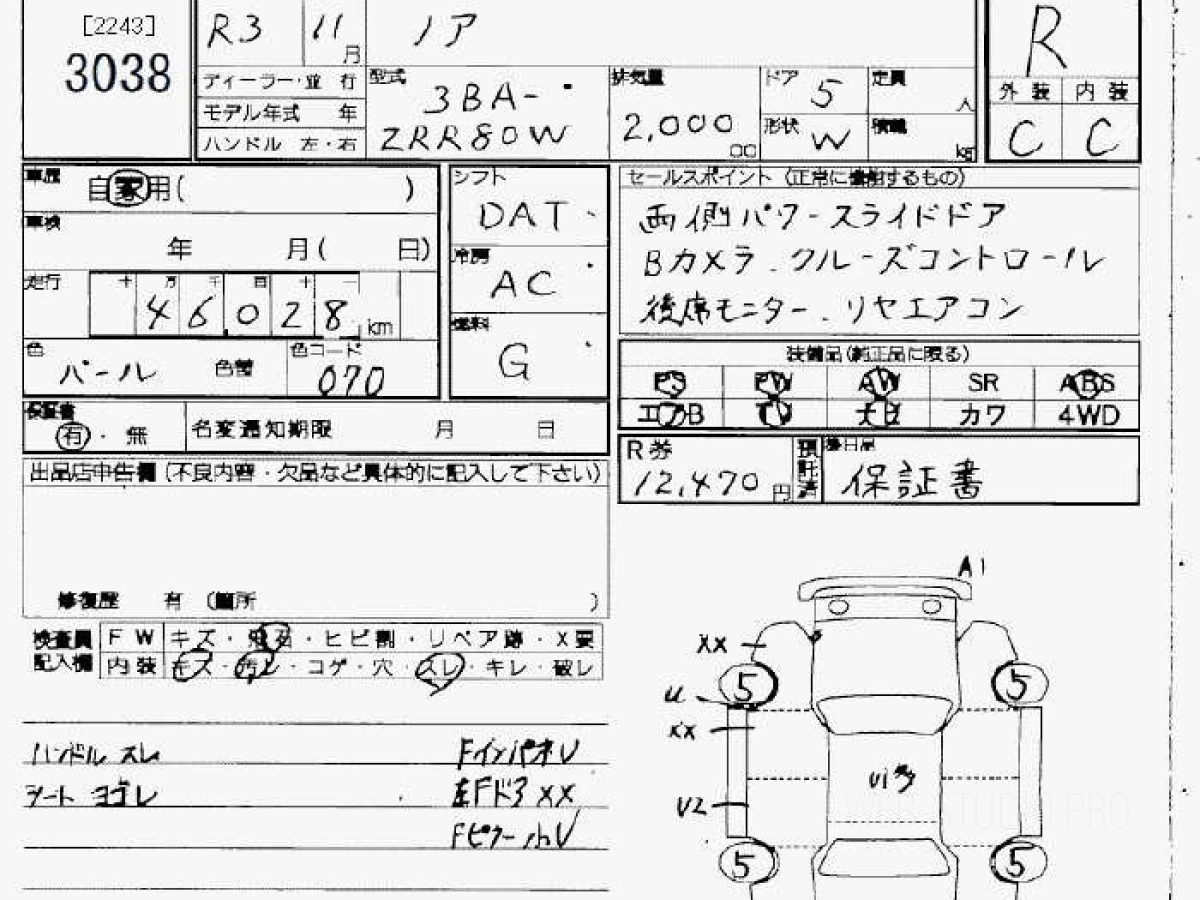 Номер кузова: ZRR80W.