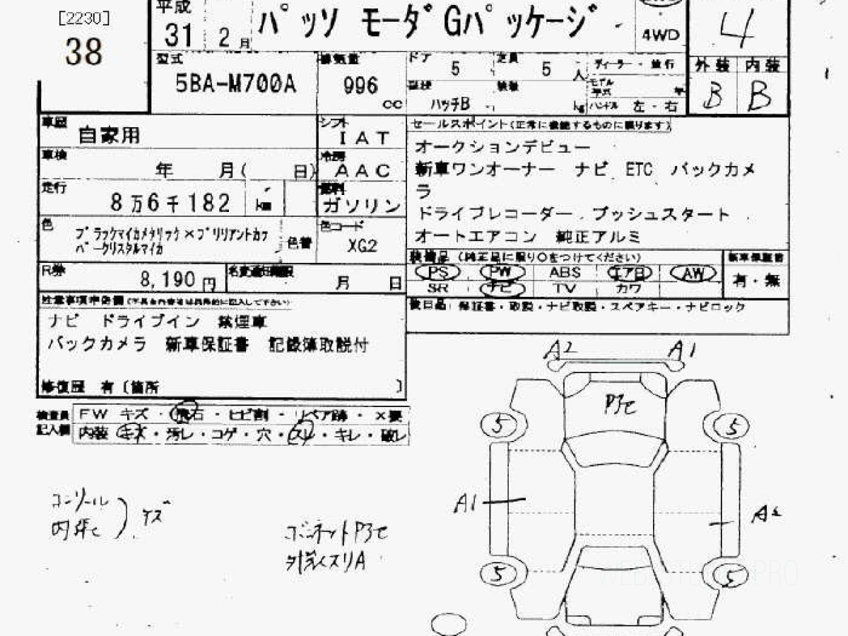 Оценка аукциона: 4, что гарантирует хорошее техническое и косметическое состояние кузова и салона.