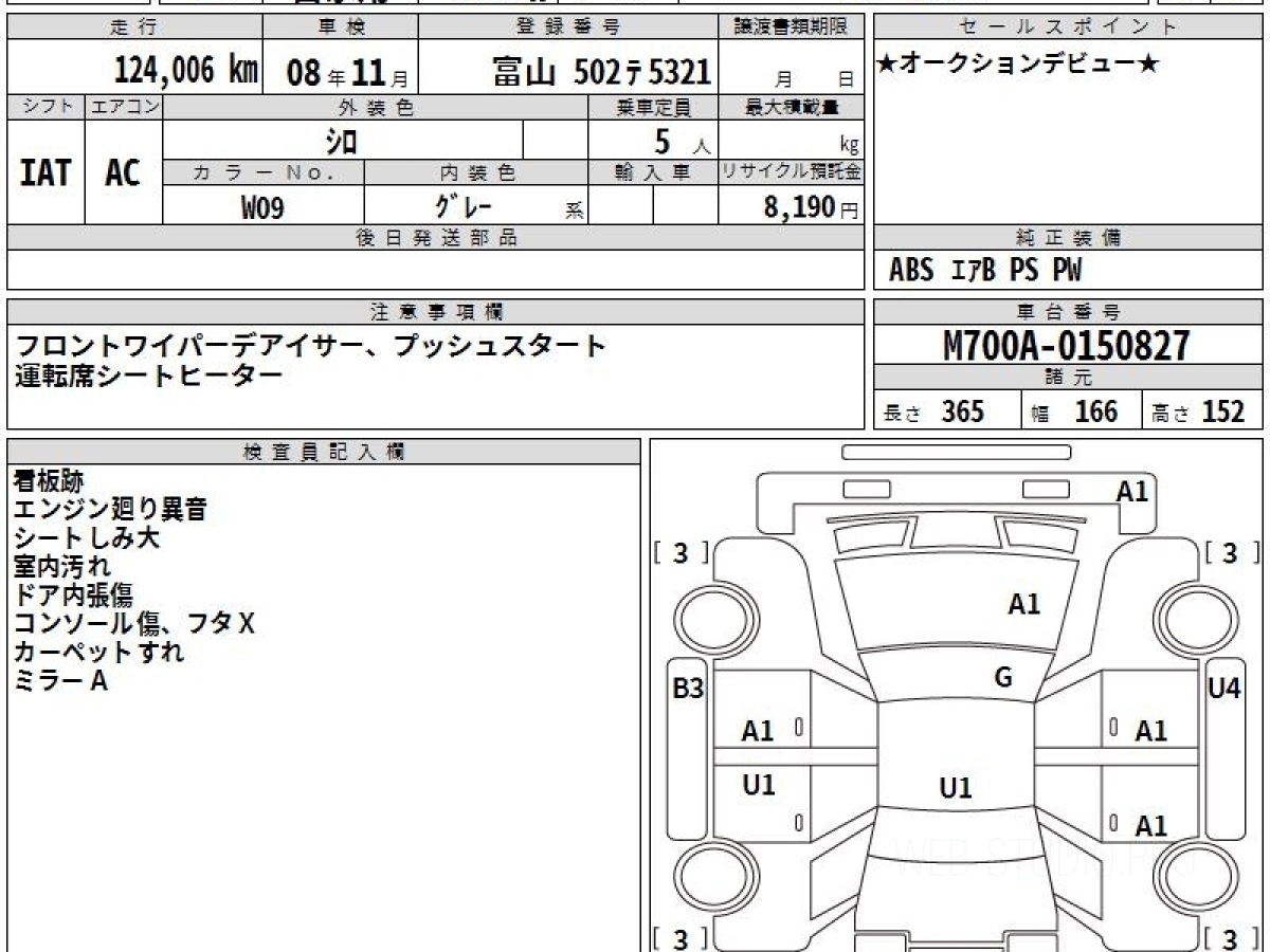Оценка аукциона: 3.5, что гарантирует хорошее техническое и косметическое состояние кузова и салона.