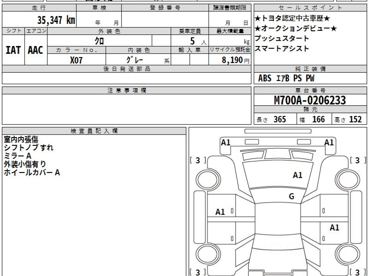 Номер кузова: M700A.