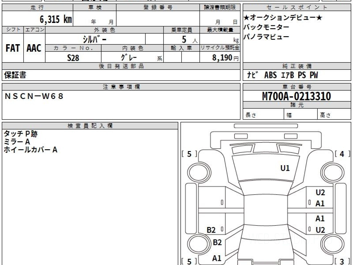 Номер кузова: M700A.