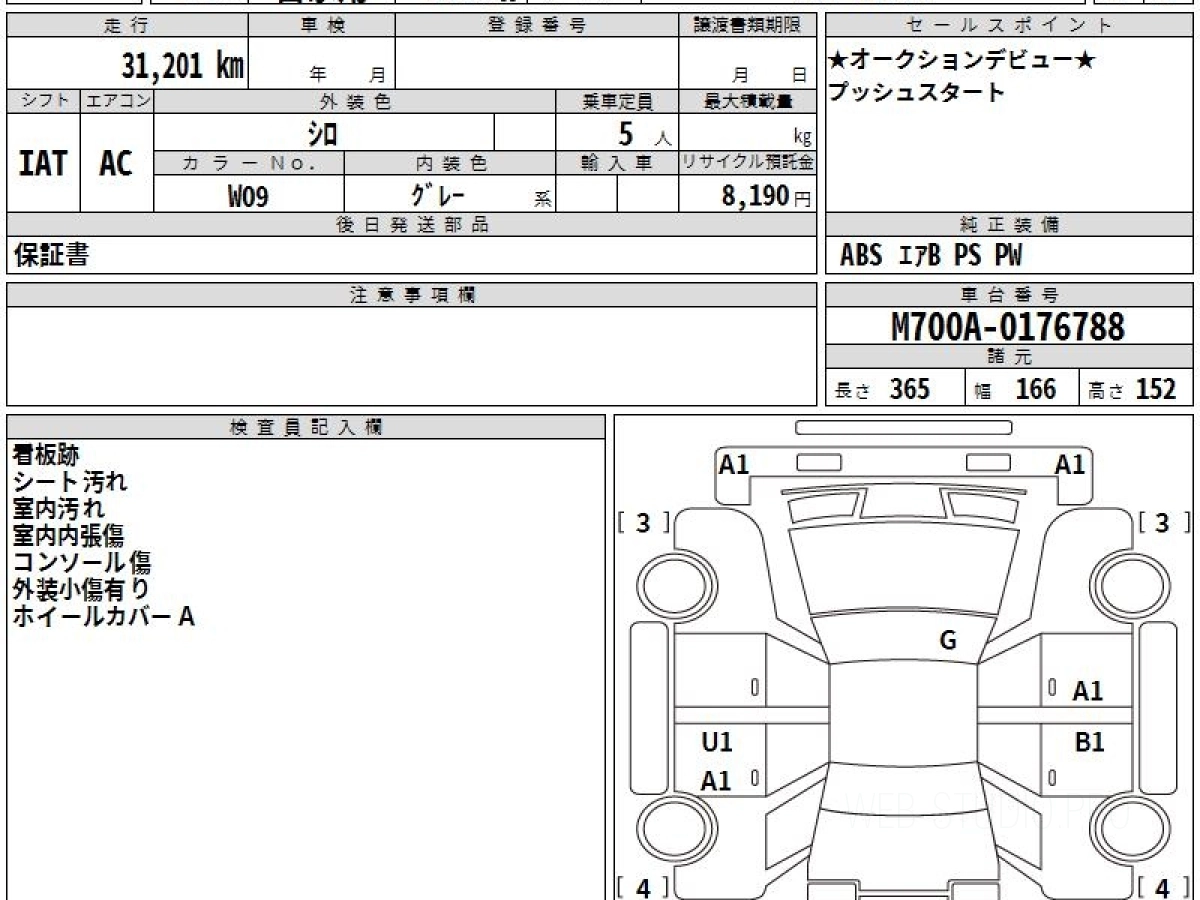 Номер кузова: M700A.