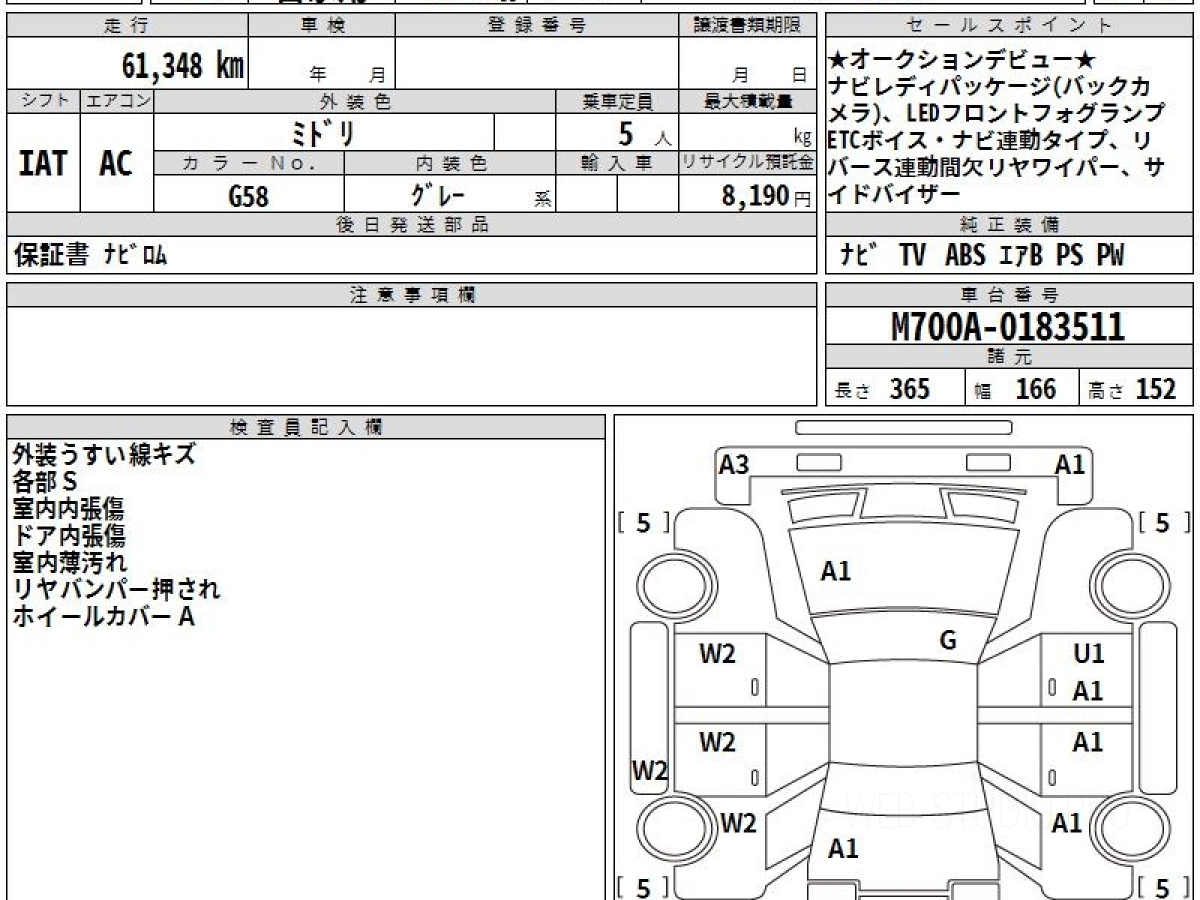 Номер кузова: M700A.