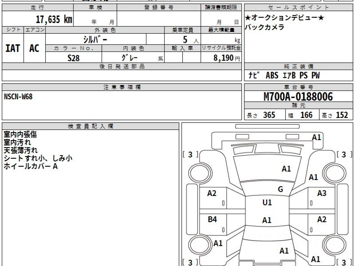 Номер кузова: M700A.